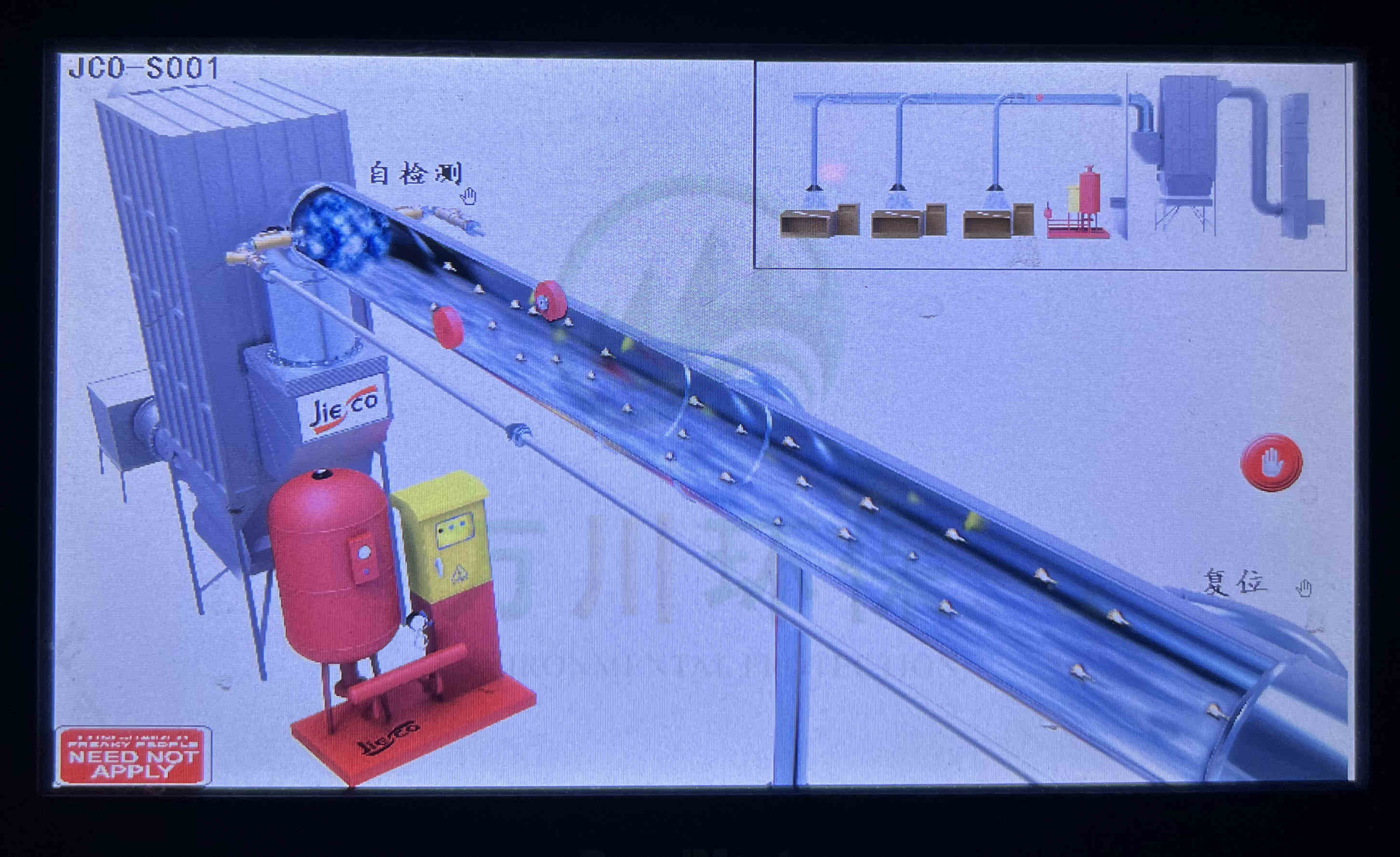 (萬川環(huán)保布袋除塵器配套電控系統(tǒng) 一鍵啟停操作方便快捷,簡單穩(wěn)定)                            (萬川布袋除塵器配套消防噴淋管路,為安全運行保駕護航)