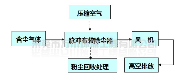 根據(jù)榮科公司的實(shí)際情況和以往的案例經(jīng)驗(yàn),我們技術(shù)人員依據(jù)國(guó)家及地方關(guān)于環(huán)保的法律和法規(guī)、工業(yè)企業(yè)設(shè)計(jì)衛(wèi)生標(biāo)準(zhǔn)(TJ36-79)、《廣東省大氣污染物排放標(biāo)準(zhǔn)》(DB44/27-2001)、《三廢治理工程技術(shù)手冊(cè)》廢氣卷,經(jīng)過(guò)對(duì)廢氣污染物和現(xiàn)有的處理技術(shù)的綜合分析,認(rèn)為該廠所產(chǎn)生的粉塵適合采用干式除塵法,所以我們?yōu)闃s科公司設(shè)計(jì)了一套風(fēng)量為35000m3/h脈沖布袋除塵器。