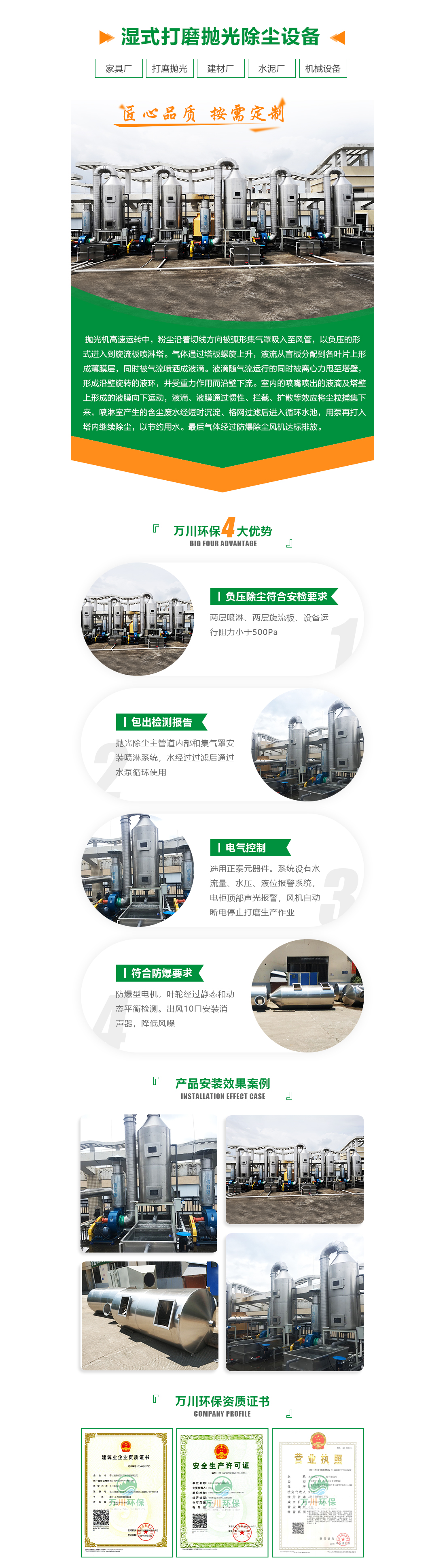 簡(jiǎn)介:惠州市恒信億豐金屬制品有限公司,是一家以生產(chǎn)高質(zhì)量的表帶、表殼、首飾、CNC加工零配件為主的大型港資企業(yè)。該公司設(shè)有多條表帶打磨拋光生產(chǎn)線。生產(chǎn)作業(yè)時(shí),車(chē)間內(nèi)飄揚(yáng)起的打磨拋光粉塵會(huì)導(dǎo)致生產(chǎn)效率下降,而且金屬打磨粉塵擁有易燃易爆的特點(diǎn),存在較大的安全隱患 五金廠打磨拋光生產(chǎn)線 五金廠打磨拋光粉塵處理流程簡(jiǎn)圖 拋光機(jī)高速運(yùn)轉(zhuǎn)中,粉塵沿著切線方向被弧形集氣罩吸入至風(fēng)管,以負(fù)壓的形式進(jìn)入到旋流板噴淋...